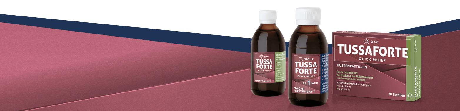 Es gibt viele natürliche Wirkstoffe, welche Husten lindern können. In unserer TUSSAFORTE-Familie haben wir die wesentlichen Inhaltsstoffe perfekt kombiniert. So gibt es für jeden Anwendungsfall die beste Mischung: Isländisch Moos, Hyaluronsäure und Xanthan in unserem Nachthustensaft sowie Eibisch und Honig in unseren Hustensäften für den Tag.